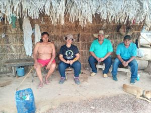 Diretora do Instituto, Cleide, o técnico Adison com os indígenas da Aldeia Belém Foto: Empaer